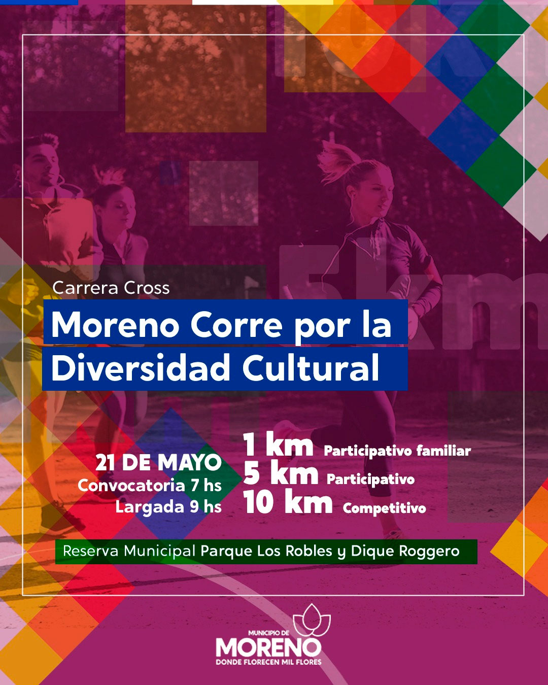 El Municipio de Moreno, a través de la Subsecretaría de Deportes y Recreación, llevará adelante la carrera Cross “Moreno Corre por la Diversidad Cultural”, el día domingo 21 de mayo en la Reserva Natural Municipal Parque Los Robles y Dique Roggero.