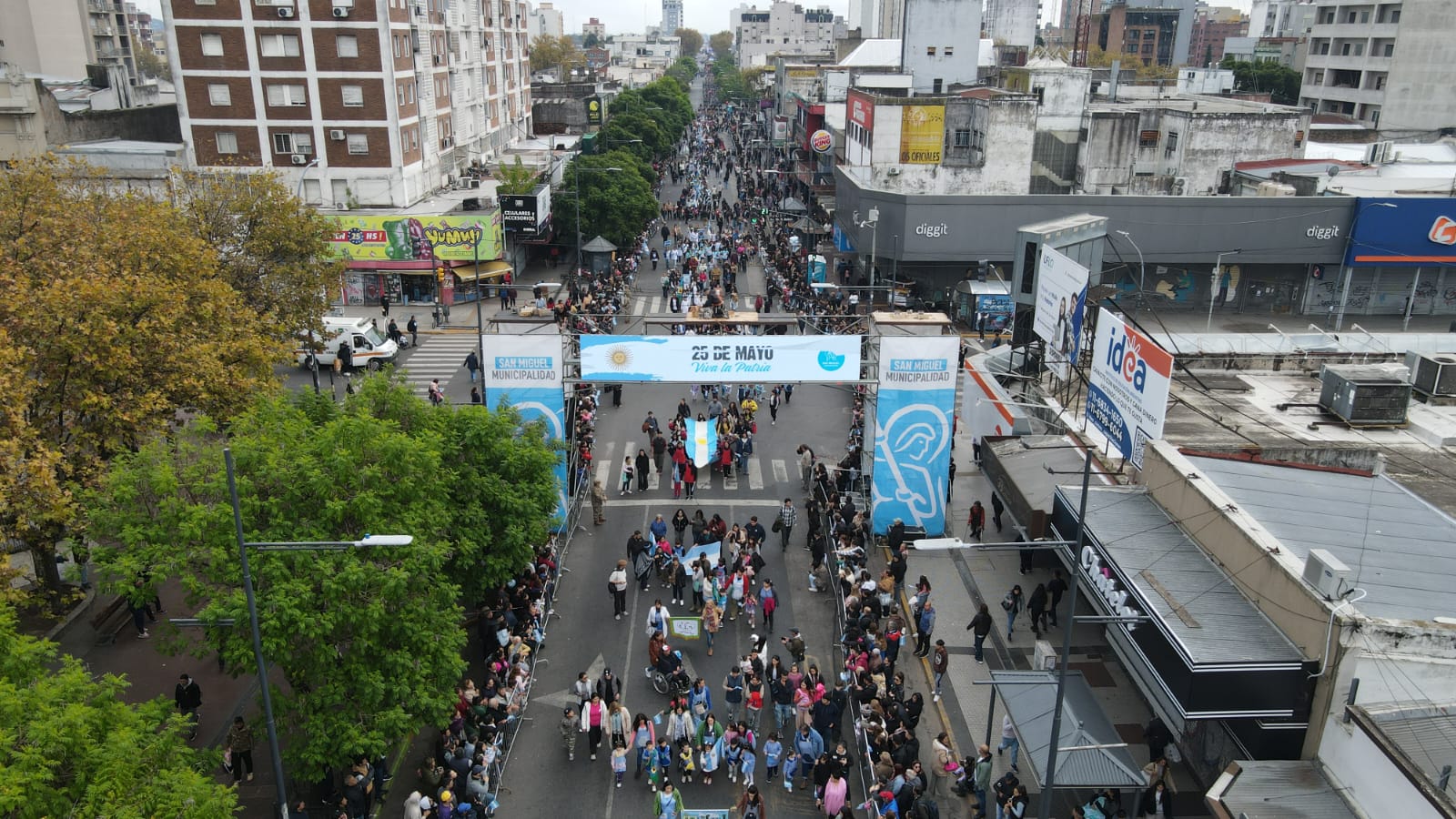 La Municipalidad de San Miguel celebró ayer los 215 años de la Revolución de Mayo con un gran desfile cívico-militar por el centro del distrito, con el palco central ubicado en la Av. Perón y Belgrano.